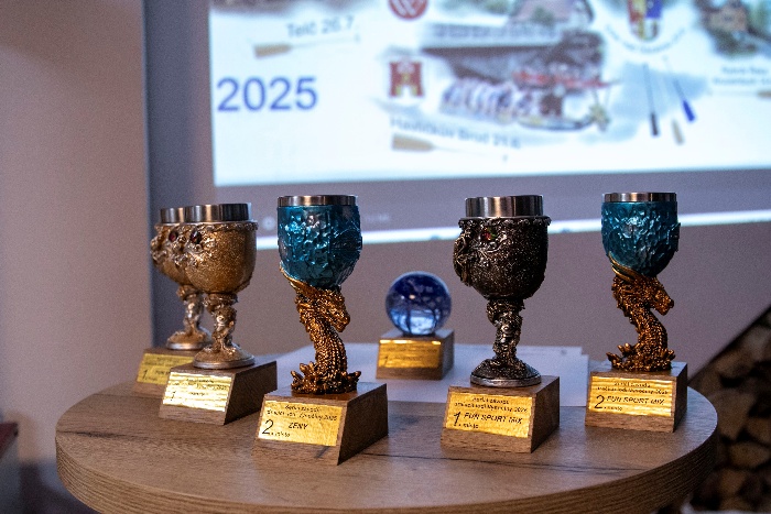 Poté jsme se všichni přemístili do Hluboké, kde na nás čekalo pečené sele a jiné tekuté dobroty. Prasátku se od dopoledních hodin věnoval a sám posléze okrajoval Radek alias pečinkář Boban. Večer pak došlo na předání ocenění za vítězství v Lize Vysočiny jednotlivým závodníkům i kormidelníkům. Ceny za rok 2020 a 2021 přijel předat reprezentační trenér Dračích lodí Petr Procházka, který zároveň popřál plno úspěchů do dalších sezon.